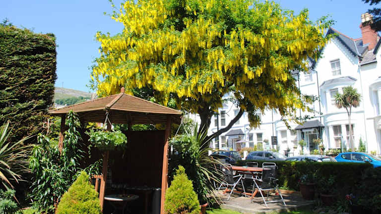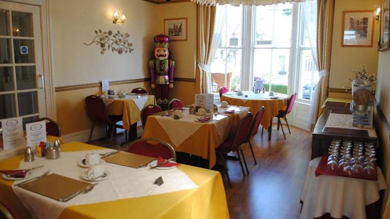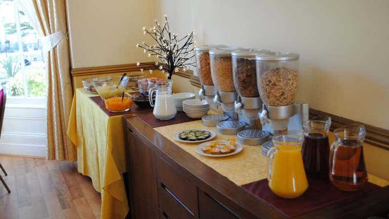 Im geräumigen Speisesaal mit Blick auf den Garten wird ein walisisches Frühstück serviert. Zusätzliche Optionen beinhalten eine Auswahl an Müsli, Obst und Joghurt. Es werden Speisen für spezielle Ernährungsbedürfnisse auf Anfrage bereitgestellt.