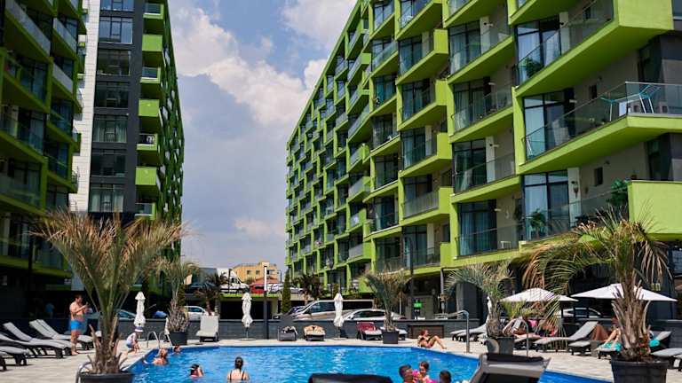 Crazy Sea View 2BR Apartment Spa Pools Resort- Parking bietet Übernachtungsmöglichkeiten mit kostenlosem WLAN sowie Klimaanlage in einer strandnahen Lage. Es verfügt über einen saisonalen Außenpool und ein Restaurant sowie Zugang zu einem Balkon und einem kostenlosen Privatparkplatz.