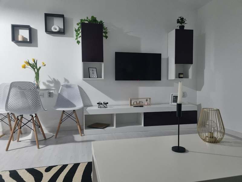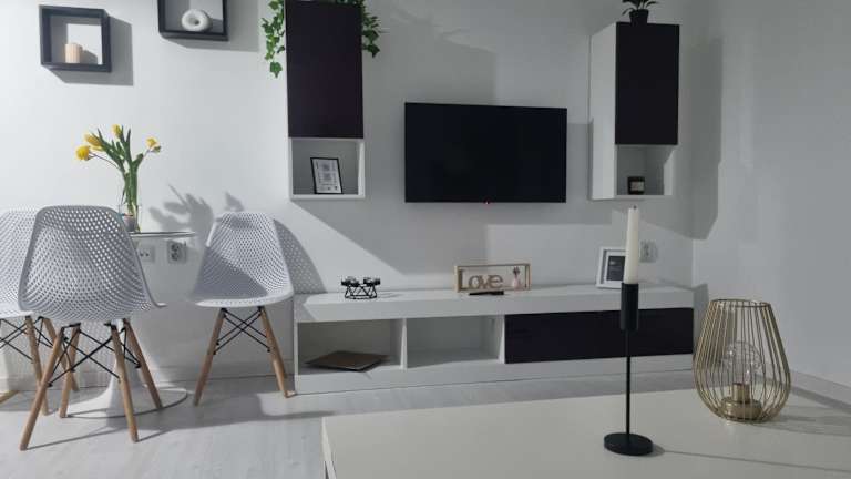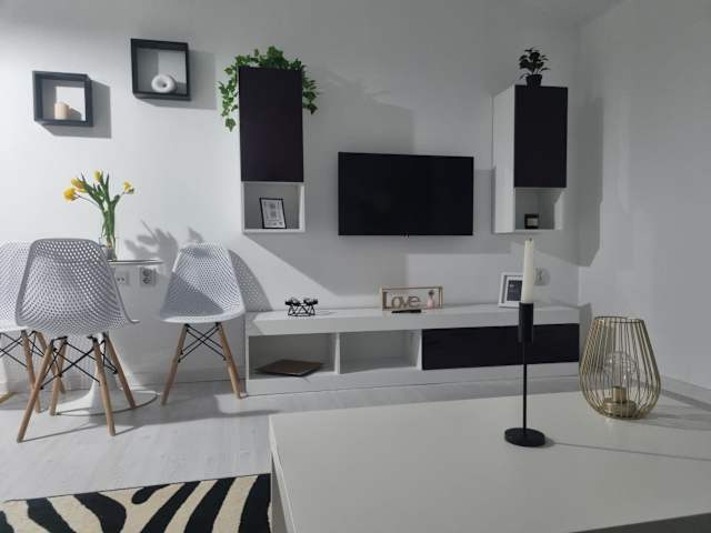 Die Ferienwohnung umfasst ein Schlafzimmer, eine Küchenzeile mit Kühlschrank und Ofen, einen Flachbild-TV, einen Sitzbereich sowie ein Badezimmer mit Dusche. Handtücher und Bettwäsche werden ebenfalls bereitgestellt.