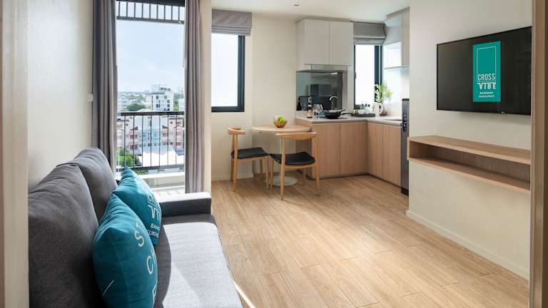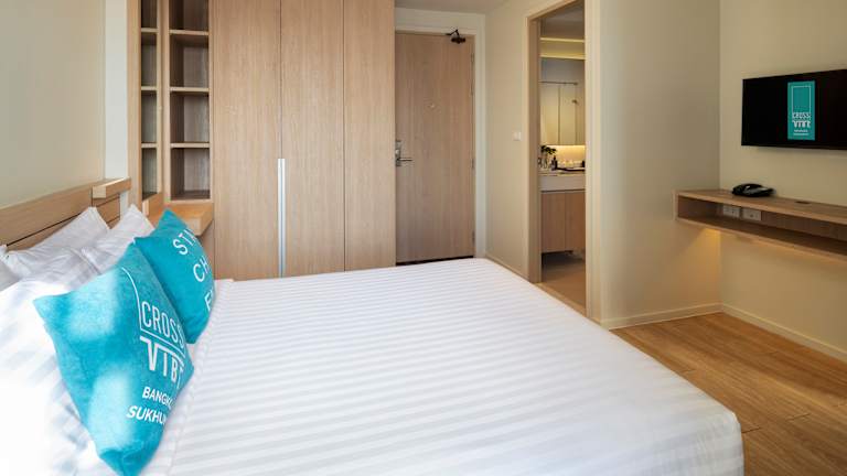 Die Zimmer im Cross Vibe Bangkok Sukhumvit - SHA Plus sind modern und komfortabel eingerichtet. Sie verfügen über eine Klimaanlage, einen Schreibtisch, einen Kühlschrank, einen Flachbild-TV und ein eigenes Badezimmer mit Dusche. Einige Zimmer verfügen auch über eine Küchenzeile. WLAN und ein Safe sind ebenfalls vorhanden.
