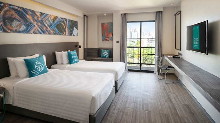 Das Cross Vibe Bangkok Sukhumvit - SHA Plus in Bangkok bietet seinen Gästen einen komfortablen Aufenthalt mit zahlreichen Annehmlichkeiten. Das Hotel verfügt über ein Restaurant, ein Fitnesscenter, einen Pool und eine Sonnenterrasse. Die Zimmer sind modern und gut ausgestattet. Das Hotel bietet zudem einen Concierge-Service und kostenloses WLAN. Die Lage des Hotels ermöglicht es den Gästen, die Stadt bequem zu erkunden und verschiedene Sehenswürdigkeiten in der Umgebung zu besuchen.