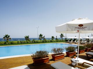 Das Crowne Plaza Antalya bietet luxuriöse Unterkünfte mit Blick auf das Mittelmeer und zeichnet sich durch ein ansprechendes Ambiente aus. Die Unterkunft umfasst 194 Zimmer und 21 Junior-Suiten. Das Hotel verfügt über einen Empfangsbereich mit Check-in/out-Service, einen TV-Raum und einen minimarkt. Optional stehen Parkmöglichkeiten in einer Garage gegen Gebühr zur Verfügung. Das Hotel bietet außerdem ein umfangreiches Serviceangebot, einschließlich Autovermietung, Transferservice und einen 24-Stunden-Zimmerservice. Das Hotel ist für Gäste mit eingeschränkter Mobilität teilweise geeignet und umfasst behindertengerechte Einrichtungen.