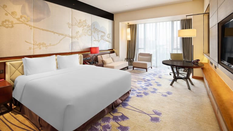 Das Crowne Plaza Chengdu West bietet 347 Zimmer auf 14 Etagen. Die klimatisierten Zimmer sind mit hochwertiger Bettwäsche, einem Flachbild-TV und einer Minibar ausgestattet. Jedes Zimmer verfügt über einen Essbereich mit Kühlschrank und Wasserkocher. Das eigene Bad bietet eine Dusche, eine Badewanne und einen Haartrockner.