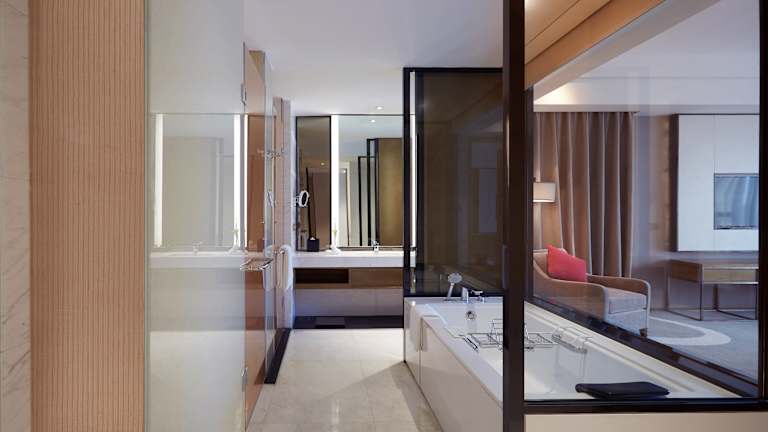 Das Crowne Plaza Hangzhou Qiantang liegt im Zentrum der Qiantang Economic and Technological Development Zone und ist nur 3 Gehminuten von der U-Bahnstation Jinshahu (Linie 1, Ausgang D) entfernt. Mit der U-Bahn benötigen Sie etwa 15 Minuten, um ins Stadtzentrum von Hangzhou zu gelangen. Der internationale Flughafen Hangzhou Xiaoshan ist 20 km entfernt und der Bahnhof Hangzhou East 10 km. Die Lage des Hotels bietet eine gute Anbindung an die wichtigsten Sehenswürdigkeiten und Geschäftsviertel der Stadt.