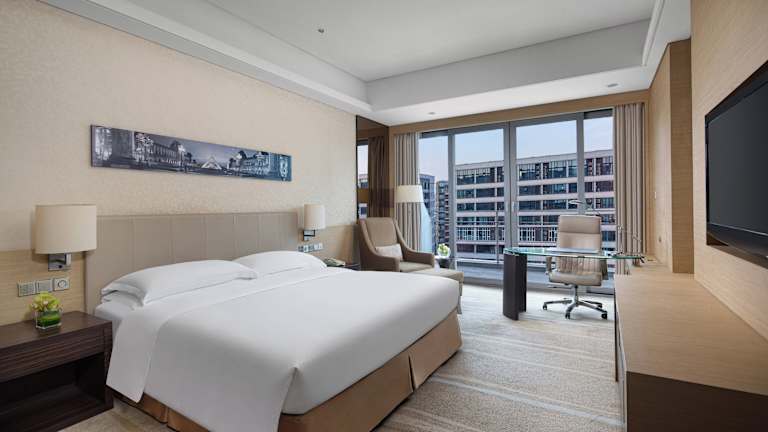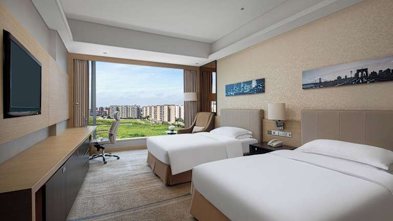 Die Zimmer im Crowne Plaza Guangzhou Huadu sind geräumig und luxuriös eingerichtet. Sie verfügen über ein LCD-TV mit Satellitenkanälen, eine Minibar und Tee-/Kaffeezubereitungsmöglichkeiten. Das Badezimmer ist mit einer Badewanne und einer separaten Regendusche ausgestattet. Luxuriöse Badezimmerutensilien von Borghese werden bereitgestellt. Kostenloses WLAN ist ebenfalls verfügbar.