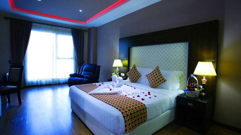 Das Crystal Palace Hotel verfügt über insgesamt 172 Zimmer, die alle ansprechend gestaltet sind. Jedes Zimmer ist klimatisiert und mit einem Flachbild-TV ausgestattet. Einige Zimmer verfügen über eine Küche mit Kühlschrank und Kochfeld. Zur weiteren Ausstattung gehören WLAN-Zugang, eine Minibar und ein Schreibtisch.