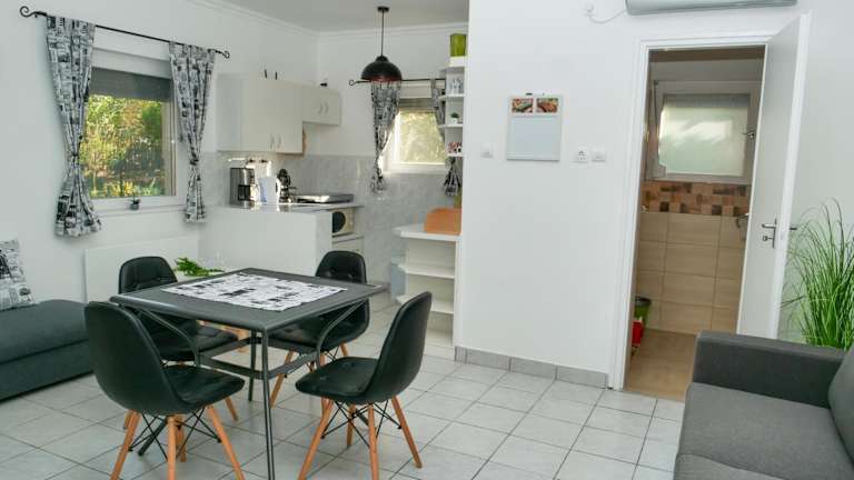 Das Cseresznyés Apartman verfügt über eine voll ausgestattete Küche, so dass Sie Ihre Mahlzeiten ganz nach Ihren Wünschen zubereiten können. Es gibt auch Grillmöglichkeiten im Garten, so dass Sie im Freien speisen können. In der Nähe des Apartments finden Sie auch Restaurants und Cafés, in denen Sie lokale Spezialitäten und internationale Gerichte genießen können.