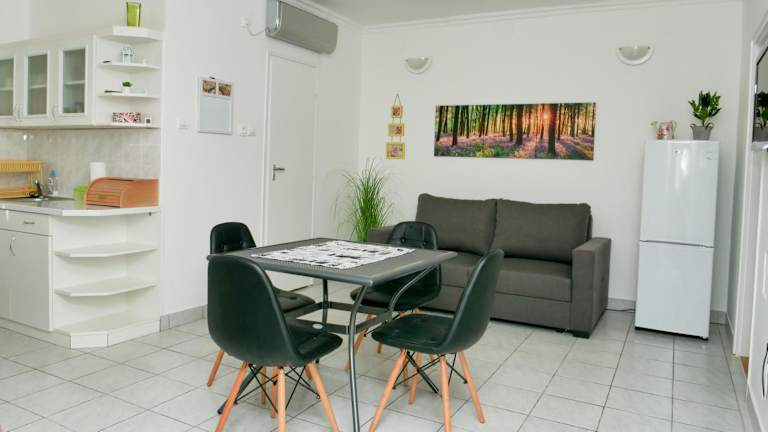 Das klimatisierte Apartment im Cseresznyés Apartman verfügt über 2 gemütliche Schlafzimmer, ein geräumiges Wohnzimmer und eine voll ausgestattete Küche. Die Küche ist mit einem Kühlschrank und einer Kaffeemaschine ausgestattet, so dass Sie Ihre Lieblingsgerichte zubereiten können. Das Apartment bietet auch ein Badezimmer mit einer Badewanne oder einer Dusche und einem Haartrockner. Handtücher und Bettwäsche werden gestellt, so dass Sie sich um nichts kümmern müssen.