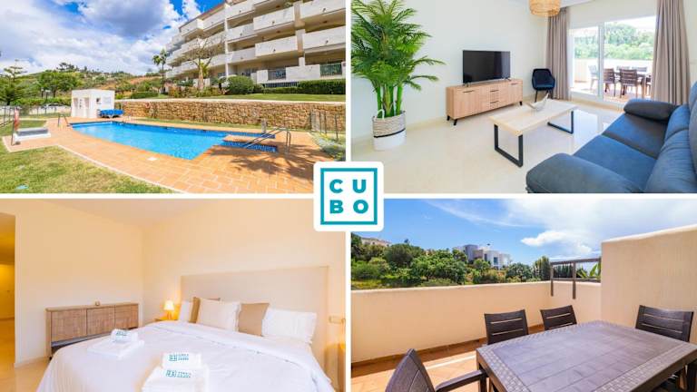 Cubo's Apartamento Santa Maria Green Hills 3B bietet Übernachtungsmöglichkeiten mit Blick auf den Pool und ist ausgestattet mit einem Balkon sowie einer Kaffeemaschine. Die Unterkunft verfügt über 2 Schlafzimmer und 2 Badezimmer und ist für eine Nichtraucherunterkunft konzipiert. Zu den Annehmlichkeiten gehören kostenloses WLAN und ein Privatparkplatz, die vor Ort zur Verfügung stehen.