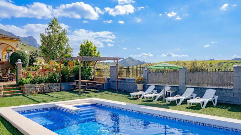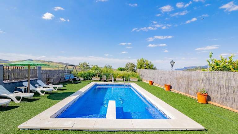 Verbringen Sie einen erholsamen Urlaub im Cubo's Casa Rural Villa Los Mellizos in Ardales. Das Ferienhaus bietet Ihnen einen eigenen Pool, eine schöne Terrasse und einen Garten, von dem aus Sie die atemberaubende Berglandschaft genießen können. Das Haus ist klimatisiert und verfügt über 2 Schlafzimmer, ein gemütliches Wohnzimmer und eine voll ausgestattete Küche. WLAN steht Ihnen kostenlos zur Verfügung. Erkunden Sie die Plaza de Espana und die Iglesia de Santa María la Mayor, die nur 47 km entfernt sind. Der Flughafen Málaga ist ebenfalls nur 47 km entfernt.