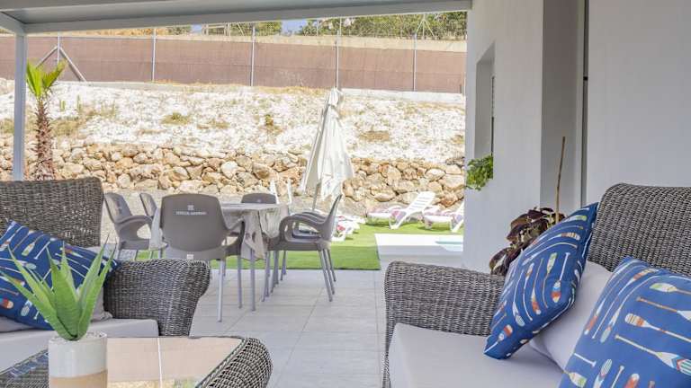 Das Ferienhaus ist klimatisiert und umfasst 2 Schlafzimmer, ein Wohnzimmer sowie eine voll ausgestattete Küche mit Kühlschrank und Kaffeemaschine. Zu den Annehmlichkeiten gehören ein Badezimmer mit Dusche und Haartrockner sowie bereitgestellte Handtücher und Bettwäsche.