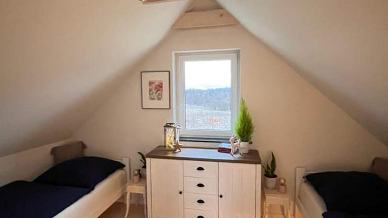 Das Ferienhaus umfasst zwei Schlafzimmer, ein Wohnzimmer sowie eine voll ausgestattete Küche mit Kühlschrank und Kaffeemaschine. Des Weiteren bietet es ein Badezimmer mit Dusche und Haartrockner. Handtücher und Bettwäsche werden bereitgestellt.
