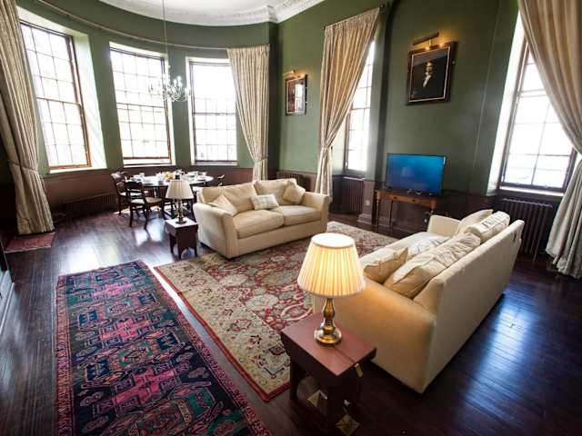 Das Apartment im Cupar Burgh Chambers ist mit einem DVD-Player ausgestattet und verfügt über eine Küchenzeile mit Kühlschrank, Geschirrspüler und Backofen. Das Wohnzimmer bietet einen gemütlichen Sitzbereich und einen Essbereich. Das Apartment verfügt über 2 Schlafzimmer und 2 Badezimmer mit Dusche und Badewanne. Handtücher und Bettwäsche werden gestellt.