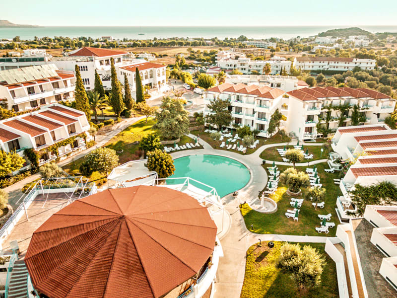 Das Cyprotel Faliraki ist von Gärten in einer ruhigen Gegend umgeben. Es liegt am Rande des lebhaften Ferienortes Faliraki an der Ostküste der griechischen Insel Rhodos. Das 2016 renovierte Hotel liegt nur wenige Gehminuten vom Sand- und Kiesstrand von Faliraki und dem pulsierenden Nachtleben des Stadtzentrums entfernt. Das Hotel verfügt über drei Swimmingpools und einen eigenen Wasserpark mit sechs verschiedenen Wasserrinnen und Rutschen, von denen einer für vier Personen geeignet ist, die sich gegenseitig auf den Grund rennen. Es gibt auch einen flachen Pool mit Rutsche und Wasserspielen für kleine Kinder. Im Hotel können Sie zahlreichen sportlichen Aktivitäten nachgehen, darunter Beachvolleyball, Wasserball, Tennis, Fußball, Boule, Billard und Darts. Das Hotel organisiert an den meisten Abenden Abendunterhaltung, von Tanzshows bis hin zu Karaoke. In Faliraki gibt es viele Geschäfte, Bars und Tavernen sowie Nachtclubs, in denen Sie bis zum Morgengrauen tanzen können. Ein Shuttlebus bringt Sie zum Strand von Faliraki, wenn Sie keine Lust zum Wandern haben. Neben dem Hauptsand gibt es kleinere Strände zu erkunden, darunter die felsige Anthony Quinn Bay. Die Stadt Rhodos liegt nur eine kurze Autofahrt entfernt und bietet sowohl hervorragende Restaurants und Einkaufsmöglichkeiten als auch touristische Attraktionen wie den Rodini-Park und den Großmeisterpalast. Ein Spaziergang durch die vielen Straßen und Gassen der Altstadt ist sehr zu empfehlen. Bitte beachten Sie, dass dieses Hotel aufgrund der Entfernungen innerhalb des Resorts möglicherweise für Gäste mit eingeschränkter Mobilität ungeeignet ist.
