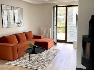 Die Ferienwohnung verfügt über ein Schlafzimmer, ein Wohnzimmer sowie eine voll ausgestattete Küche mit Kühlschrank und Kaffeemaschine. Es gibt ein Badezimmer mit Dusche und Haartrockner. Handtücher und Bettwäsche werden bereitgestellt.