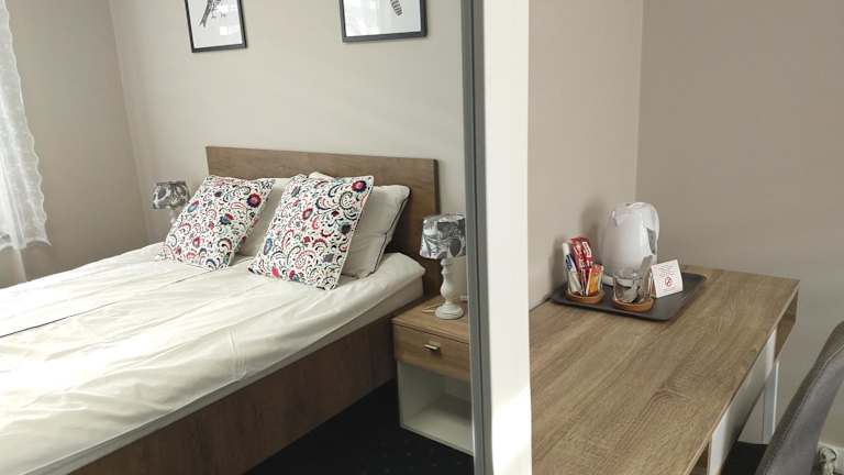 Die Zimmer im Cztery Kąty sind komfortabel und gemütlich eingerichtet. Jedes Zimmer verfügt über einen Kleiderschrank, in dem Sie Ihre Kleidung und persönlichen Gegenstände aufbewahren können. Ein Schreibtisch steht Ihnen zur Verfügung, falls Sie arbeiten oder etwas schreiben möchten. Zur Unterhaltung gibt es einen Flachbild-TV, damit Sie Ihre Lieblingssendungen und Filme genießen können. Jedes Zimmer verfügt auch über ein eigenes Badezimmer für Ihre persönliche Nutzung.