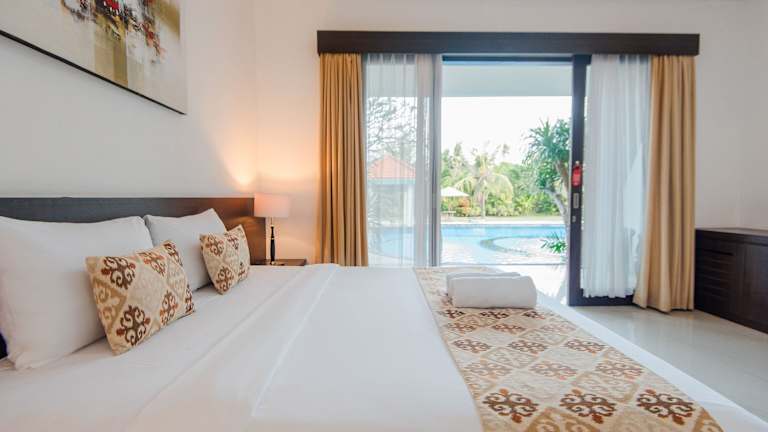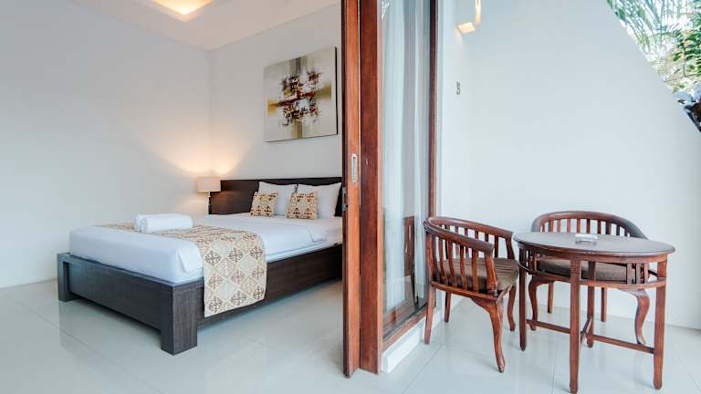 Die 8 Zimmer im D'Kubu Pratama Homestay sind geräumig und klimatisiert. Jedes Zimmer verfügt über einen eigenen Balkon mit Blick auf die tropischen Gärten. Zur Ausstattung gehören eine Minibar mit kostenfreiem Mineralwasser, ein TV und ein eigenes Badezimmer mit Badewanne.