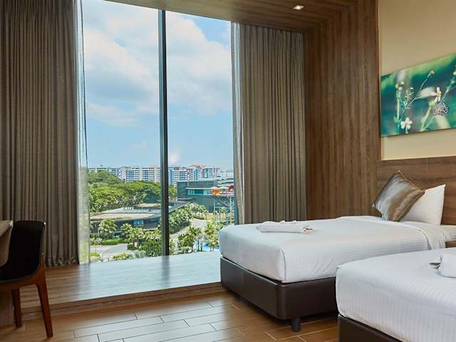 Das D'Resort @ Downtown East liegt in einer ruhigen Umgebung, umgeben vom natürlichen Grün des Strandparks Pasir Ris Park. Hier können Sie die Natur genießen und sich entspannen. Das Resort bietet auch einen Wasserpark, der Spaß für die ganze Familie verspricht. In der Umgebung finden Sie auch verschiedene Restaurants und Einkaufsmöglichkeiten. Die Singapore Expo und das Fährterminal Changi Point sind nur eine kurze Autofahrt entfernt. Der Flughafen Singapur ist ebenfalls gut erreichbar.