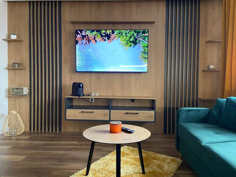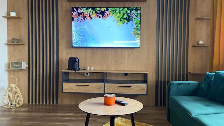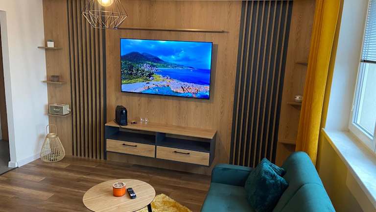 Das Apartment im D&T by Tomazzo bietet einen komfortablen Rückzugsort für Gäste. Mit einem Schlafzimmer, einer gut ausgestatteten Küche, einem gemütlichen Sitzbereich und einem modernen Badezimmer bietet das Apartment alles, was Sie für einen angenehmen Aufenthalt benötigen. Der Flachbild-TV und das kostenfreie WLAN sorgen für Unterhaltung und Verbindung zur Außenwelt. Handtücher und Bettwäsche werden gestellt, um Ihnen den Aufenthalt so angenehm wie möglich zu gestalten.