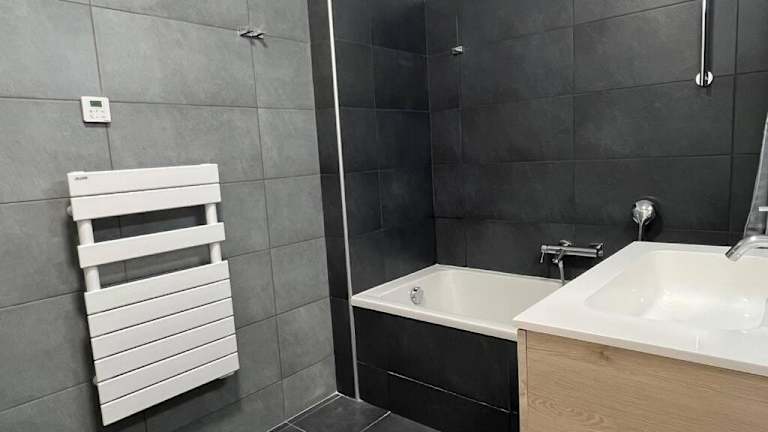 Die Ferienwohnung umfasst zwei separate Schlafzimmer, ein Wohnzimmer und eine voll ausgestattete Küche, die mit einem Kühlschrank und einem Geschirrspüler ausgestattet ist. Es steht ein Badezimmer zur Verfügung, und es werden Handtücher sowie Bettwäsche bereitgestellt.