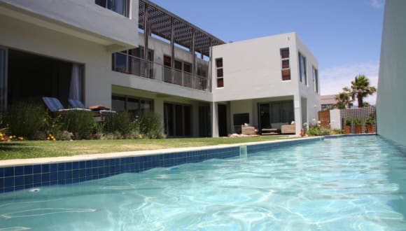 da Heim – das Gästehaus direkt am Strand Auf Ihrer Reise nach Kapstadt fühlen Sie sich “da Heim” im wahrsten Sinne des Wortes wie zu Hause. Abseits von der Großstadt-Hektik Kapstadts, ist das Zentrum der Kapmetropole trotzdem in 15 min erreichbar. Das 4-Sterne-Haus “da Heim” liegt direkt am Strand der Tafelbucht. Genießen Sie die weiten Strände und die angenehme Atmosphäre des großen Gartens oder schwimmen Sie ein paar Bahnen im solarbeheizten 25m-Pool. Radfahrer, Schwimmer, Läufer, Triathleten, Wassersportler und Golfer finden alles, was sie für ihr Training benötigen, direkt vor Ort. Windsurfer riggen auf dem Grundstück auf und gehen zu Fuß zum Strand, während ihre “bessere Hälfte” die Sonne am Pool im windgeschützten Garten genießt. Der Milnerton Golf Course (18 Löcher) ist in 15 Fußminuten zu erreichen, und das Lauf- und Fahrradtraining beginnt direkt am Gästehaus. Ihr Urlaubswetter von heute: www.wetteronline.de Ihr Surfwetter von heute: www.windfinder.de Sunset Beach ist die sicherste Gegend im gesamten Western Cape. Das Gästehaus ist alarmgesichert, und die Region wird zusätzlich rund um die Uhr durch Wachdienste der Gemeinde überwacht. Appartements mit Meerblick Die Appartements des 2006 erbauten Hauses sind modern und komfortabel eingerichtet. Sie können zwischen 2 deutschen und 10 nationalen Fernsehsendern sowie Musiksendern wählen oder aber an den Flatscreen-LCD-Fernseher Ihren iPod anschließen. Internetanschluß (wireless DSL) steht kostenlos zur Verfügung.