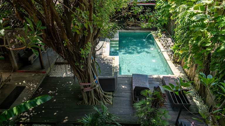 Das Da'Housetel Kuta ist ein gemütliches und entspanntes Hotel im ruhigen Viertel Sunset Road in Kuta. Mit einem schönen Garten, einem erfrischenden Außenpool und einer Bar mit einer gemütlichen Lounge im Freien bietet es den perfekten Ort, um sich zu erholen und die Umgebung zu erkunden. Das Hotel ist nur eine kurze Fahrt vom Flughafen und dem berühmten Strand von Kuta entfernt. Genießen Sie kostenloses WLAN und Parkmöglichkeiten. Die Unterkunft bietet verschiedene Schlafmöglichkeiten, von Schlafsälen bis hin zu klimatisierten privaten Zimmern. Einige Zimmer verfügen über einen eigenen Sitzbereich zum Entspannen. Das Abendessen ist im Zimmerpreis inbegriffen. Das freundliche Personal ist rund um die Uhr für Sie da und organisiert gerne Grillabende, Ausflüge und Aktivitäten in der Umgebung. Entdecken Sie den Dewa Ruci Kreisverkehr, der nur 1,6 km entfernt ist, und erreichen Sie den Strand von Kuta in nur 2,2 km Entfernung. Der Flughafen Denpasar ist nur 5 km vom Da'Housetel Kuta entfernt.
