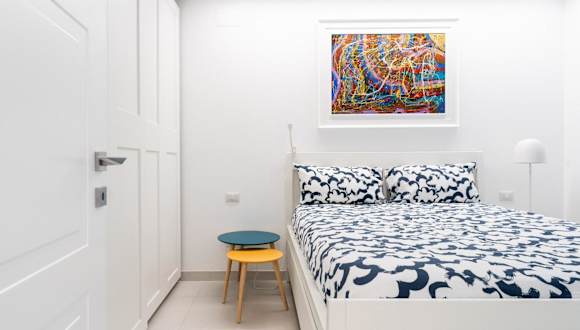 Die Ferienwohnung ist klimatisiert und besteht aus einem Schlafzimmer, einem Wohnzimmer sowie einer voll ausgestatteten Küche. Zu den Küchenausstattungen gehören ein Kühlschrank und eine Kaffeemaschine. Es stehen zwei Badezimmer mit einem Bidet und einer Dusche zur Verfügung. Handtücher und Bettwäsche werden bereitgestellt.