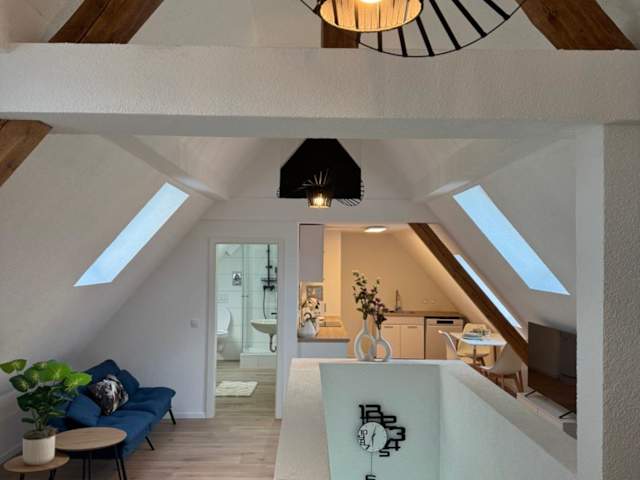 Dachgeschosstraum ist eine Ferienwohnung, die von einem privaten Gastgeber geführt wird. Sie bietet einen modernen Komfort und ist eine Nichtraucherunterkunft. Check-in ist ab 15:00 Uhr und bis 23:00 Uhr möglich, während der Check-out zwischen 08:00 Uhr und 11:00 Uhr stattfindet. Es sind keine Feiern wie Junggesellenabschiede gestattet und Haustiere sind nicht erlaubt.