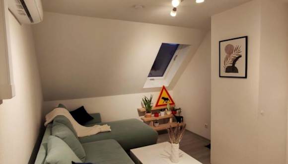 Die Dachgeschosswohnung mit Klimaanlage verfügt über ein gemütliches Schlafzimmer, eine voll ausgestattete Küche mit Mikrowelle und Kühlschrank sowie ein Badezimmer mit Dusche. Das Apartment bietet zudem einen Flachbild-TV und einen komfortablen Sitzbereich. Handtücher und Bettwäsche werden gestellt, um Ihren Aufenthalt so angenehm wie möglich zu gestalten.