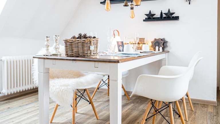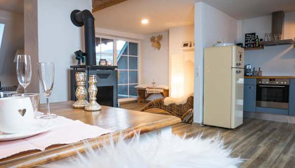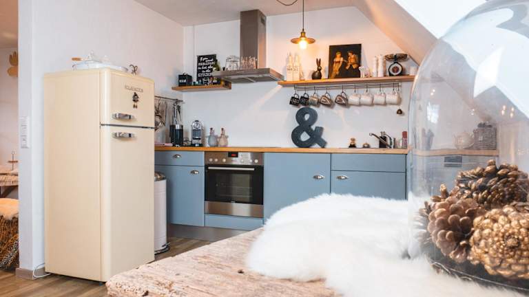 In der voll ausgestatteten Küche der Dachwohnung haben Sie die Möglichkeit, Ihre eigenen Mahlzeiten zuzubereiten und sich wie zu Hause zu fühlen. Alternativ können Sie auch die umliegenden Restaurants erkunden und die regionale Küche genießen.