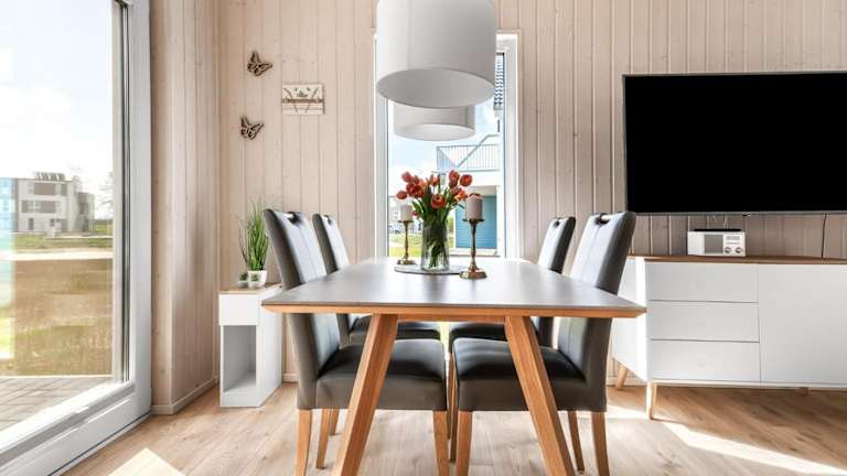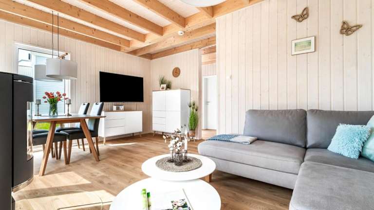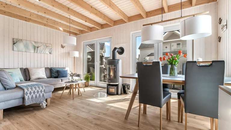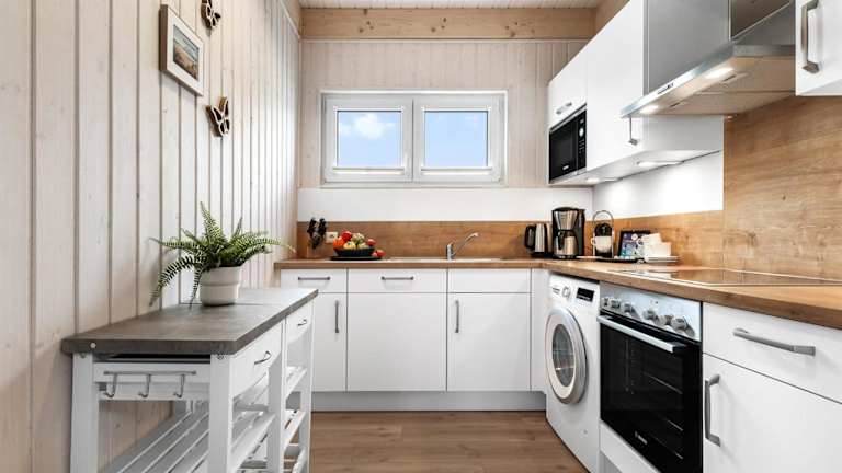 Das Ferienhaus verfügt über 2 Schlafzimmer, einen Fernseher sowie eine voll ausgestattete Küche. Zur Küchenausstattung gehören ein Kühlschrank, ein Geschirrspüler, eine Waschmaschine, ein Ofen und eine Mikrowelle.