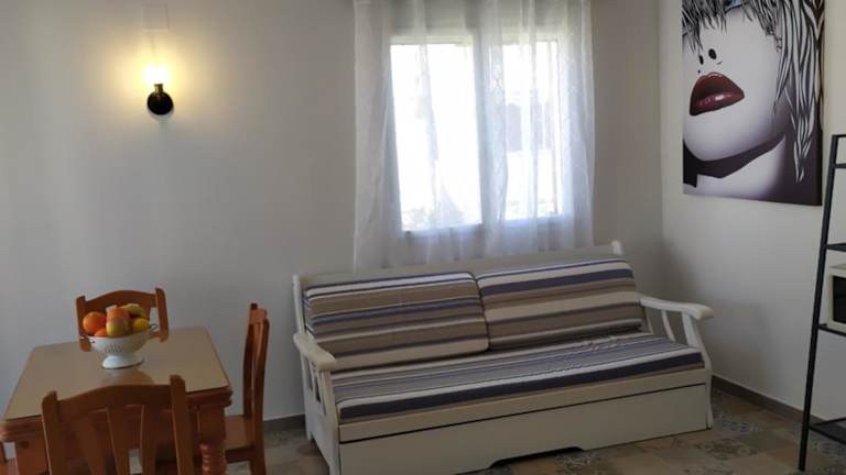 Das klimatisierte Apartment im Hotel Dafne's Beach verfügt über ein Schlafzimmer, ein Wohnzimmer und eine voll ausgestattete Küche. Die Terrasse und der Garten bieten die perfekte Umgebung, um die warmen Sonnenstrahlen zu genießen. Handtücher und Bettwäsche werden gestellt, um Ihren Aufenthalt so angenehm wie möglich zu gestalten.