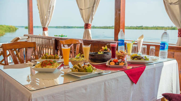 Die Dahabiya ECO Queen Cleopatra bietet Übernachtungsmöglichkeiten mit Gemeinschaftslounge, Terrasse, Restaurant, Bar und Grillmöglichkeiten. Kostenloses WLAN ist verfügbar. Die Unterkunft bietet zusätzlich einen kostenlosen Flughafentransfer nach vorheriger Ankündigung.
