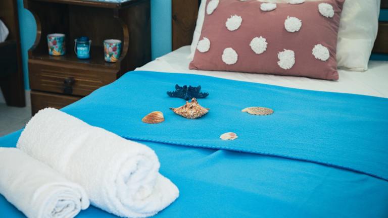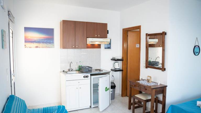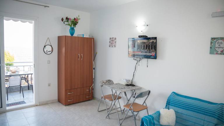 Das klimatisierte Ferienhaus im Daisy's room bietet alles, was Sie für einen angenehmen Aufenthalt benötigen. Es verfügt über eine Terrasse mit Meerblick, auf der Sie die frische Meeresbrise genießen können. Das Schlafzimmer ist gemütlich und bietet ausreichend Platz für eine erholsame Nacht. Die voll ausgestattete Küchenzeile ermöglicht es Ihnen, Ihre eigenen Mahlzeiten zuzubereiten und sich wie zu Hause zu fühlen. Ein Flachbild-TV sorgt für Unterhaltung und Entspannung.