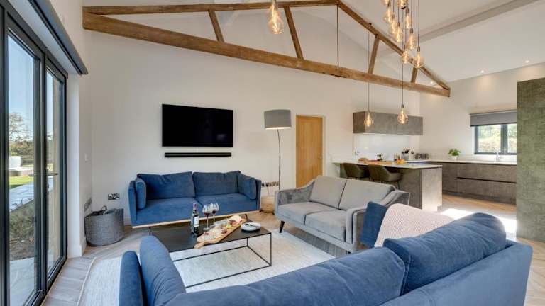 Das Ferienhaus Daisys Barn bietet ein gemütliches Wohnzimmer und eine voll ausgestattete Küche mit Kühlschrank und Geschirrspüler. Die Unterkunft ist komfortabel eingerichtet und bietet Handtücher und Bettwäsche für die Gäste. Genießen Sie die Privatsphäre und den Komfort dieses charmanten Ferienhauses während Ihres Aufenthalts.