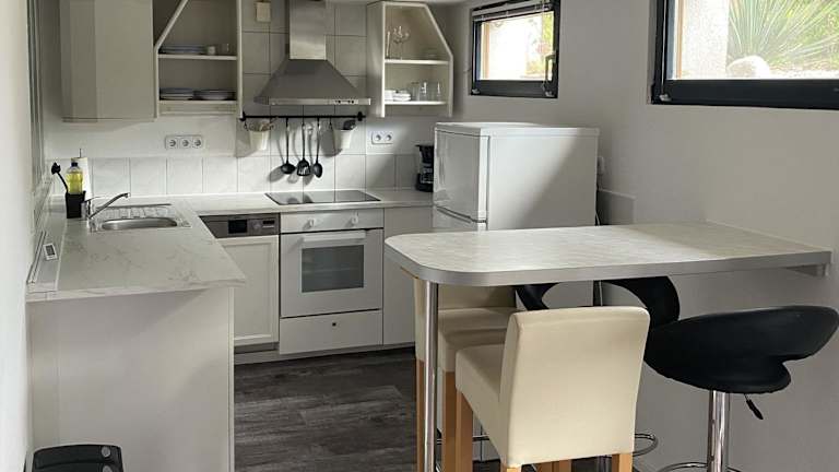 Die Ferienwohnung verfügt über ein Schlafzimmer, ein Wohnzimmer, eine voll ausgestattete Küche mit Kühlschrank und Kaffeemaschine sowie ein Badezimmer mit Badewanne und kostenlosen Pflegeprodukten. Handtücher und Bettwäsche sind ebenfalls vorhanden. Es handelt sich um eine Nichtraucherunterkunft, die mit Gartenmöbeln ausgestattet ist.