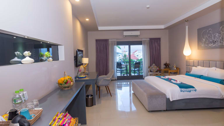 Das Damrei Angkor Hotel in Siem Reap ist eine Hommage an die majestätischen Elefanten und bietet eine komfortable Unterkunft. Genießen Sie einen erfrischenden Salzwasserpool und entspannen Sie im hoteleigenen Wellnessbereich. WLAN ist in allen Bereichen kostenfrei verfügbar. Die modernen, klimatisierten Zimmer bieten einen eigenen Balkon mit Blick auf die Stadt, den Garten oder den Pool. Das hoteleigene Restaurant Aira verwöhnt Sie mit köstlicher Khmer-Küche sowie asiatischen und westlichen Gerichten. Mit der 24-Stunden-Rezeption und dem umfangreichen Serviceangebot ist Ihr Aufenthalt im Damrei Angkor Hotel perfekt organisiert.