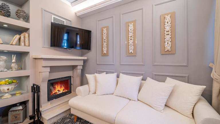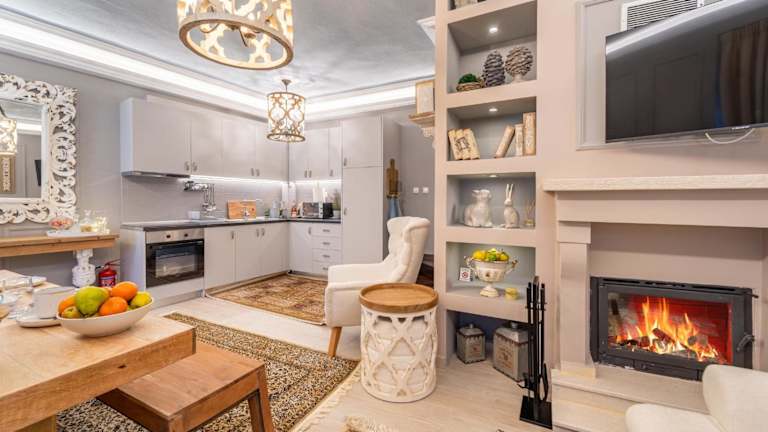 Dandy Villas Nymfaio - Snow Queen - Sauna - Fireplace - Up to 6 adults 2 kids bietet eine komfortable Unterkunft mit einem Garten und einer Veranda oder einem Patio. Es handelt sich um eine Villa, die Platz für bis zu 6 Erwachsene und 2 Kinder bietet. Kostenloses WLAN ist ebenfalls verfügbar.