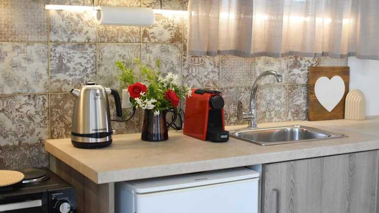 Das Ferienhaus umfasst ein Schlafzimmer, ein Wohnzimmer sowie eine voll ausgestattete Küche mit Kühlschrank und Kaffeemaschine. Es gibt ein Badezimmer mit Dusche und kostenlosen Pflegeprodukten. Handtücher und Bettwäsche werden bereitgestellt. Die Zimmer sind klimatisiert und bieten schallisolierte Elemente. Außerdem sind Einrichtungen wie ein Safe und Gartenmöbel vorhanden.
