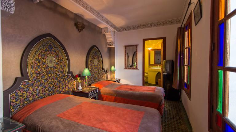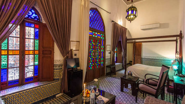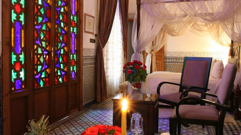 Die Pension Dar Al Andalous bietet 12 Zimmer, die alle mit modernem Komfort ausgestattet sind. Jedes Zimmer verfügt über eine Klimaanlage, eine Minibar, Sat-TV, ein Telefon und einen Safe. Der traditionelle marokkanische Stil wurde bei der Renovierung beibehalten und verleiht den Zimmern einen charmanten und authentischen Charakter.