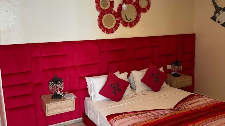 Die 5 individuell gestalteten Zimmer im Dar Chadia Riad bieten den Gästen Komfort und Entspannung. Jedes Zimmer verfügt über eine MP3-Dockingstation, einen DVD-Player und ein Select-Comfort-Bett mit Daunenbettdecken und italienischen Bettbezügen von Frette. Ein 55-Zoll-Smart-TV mit Satellitenempfang und kostenfreies WLAN sorgen für Unterhaltung und Konnektivität. Die Badezimmer sind mit Duschen, kostenlosen Pflegeprodukten und einem Haartrockner ausgestattet.