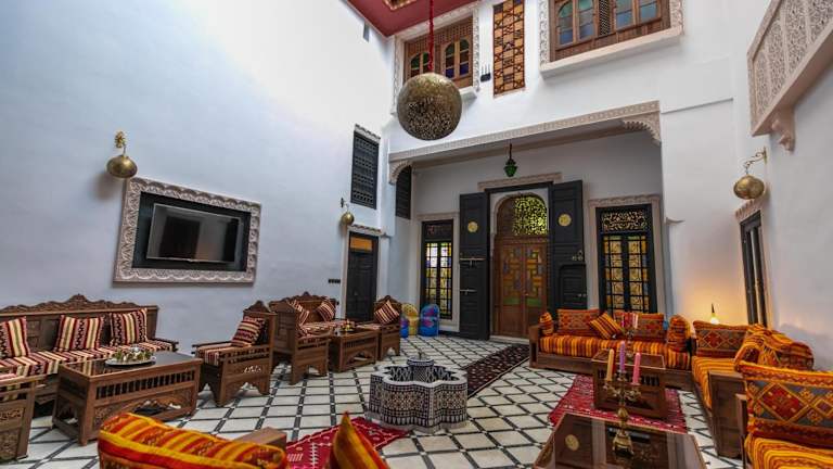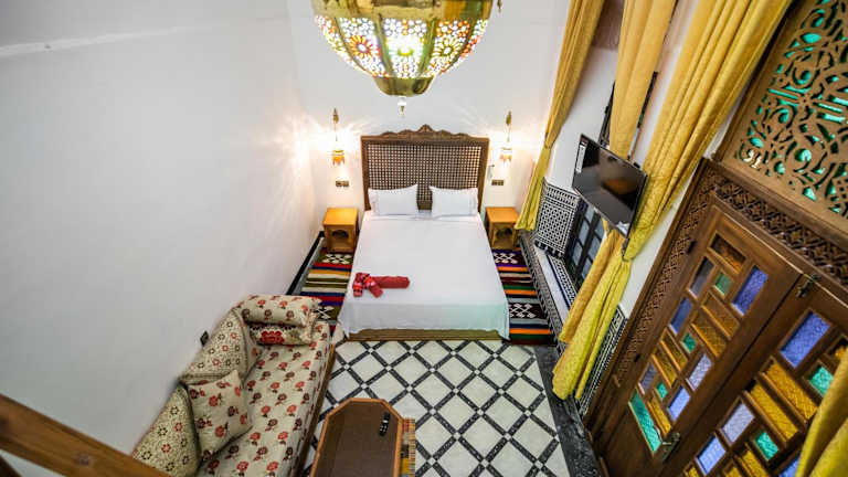 Das Hotel Dar Layali Fez in Fès ist die ideale Unterkunft, um die Stadt zu erkunden und die marokkanische Kultur zu erleben. Das Riad bietet komfortable Zimmer mit modernen Annehmlichkeiten und ein Restaurant, in dem Sie ein köstliches Halal-Frühstück genießen können. Das freundliche Personal und die praktischen Businesseinrichtungen machen Ihren Aufenthalt angenehm und unkompliziert.