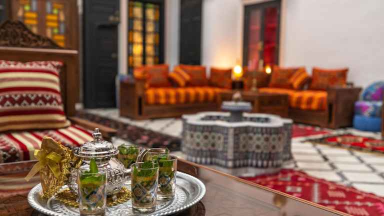 Im Hotel Dar Layali Fez können Sie ein köstliches Halal-Frühstück genießen, das Ihnen einen guten Start in den Tag bietet. Das Riad verfügt auch über ein Restaurant, in dem Sie weitere Mahlzeiten genießen können.