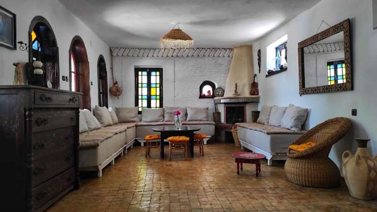 Das Dar Wadada in Chefchaouen bietet eine haustierfreundliche Unterkunft inmitten einer malerischen Umgebung. Genießen Sie die kostenfreie Nutzung des WLANs und entspannen Sie auf der Terrasse mit Blick auf die Berge oder den Garten. Die Zimmer sind mit eigenem Bad ausgestattet und bieten einen komfortablen Aufenthalt. Beachten Sie jedoch, dass der Zugang zur Unterkunft nur mit einem Allradfahrzeug möglich ist. Bei Bedarf steht Ihnen auch ein Shuttleservice vom Platz Ras El Maa zur Verfügung. Erkunden Sie die nahegelegenen Sehenswürdigkeiten wie den Aussichtspunkt und die Wasserquelle Ras Elma. Der Flughafen Tetouan Sania Ramel liegt nur 49 km entfernt.