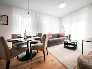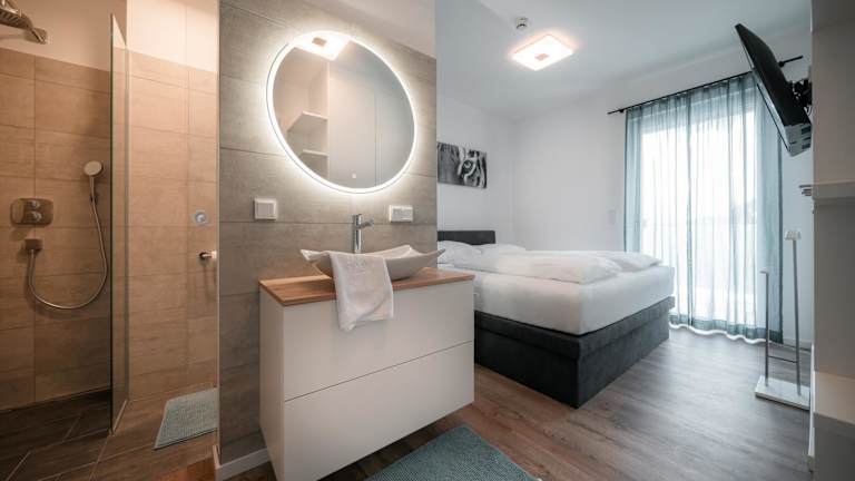 Die Appartements sind mit einer voll ausgestatteten Küche inklusive Kühlschrank, Kaffeemaschine, Geschirrspüler, Ofen, Mikrowelle und Wasserkocher ausgestattet. Des Weiteren verfügen die Unterkünfte über einen Flachbild-TV und ein eigenes Badezimmer mit Dusche.