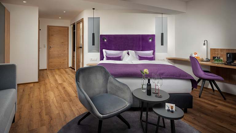 Himmlische Nächte und traumhafter Schlaf – in unseren neuen Zimmern und Suiten fühlen Sie sich sofort zuhause! Stylisch, geräumig, hell und hochmodern – das sind unsere 50 neu umgebauten Zimmer und Suiten. Jedes Zimmer schafft mit stilvollem Interieur und angenehmem Ambiente eine Atmosphäre zum Wohlfühlen. Speziell die neuen Panoramastudios bieten eine fantastische Aussicht auf das Kaisergebirge - so startet man doch gerne in seinen Tag! Bei uns im 4 Sterne Superior Hotel Das Kaiserblick in Tirol soll es Ihnen an nichts fehlen! All unsere Gästezimmer sind Nichtraucherzimmer und auf drei miteinander verbundene Häuser aufgeteilt. Sie bieten jeweils einen Balkon oder eine Terrasse. Da wir Ihren Urlaub so angenehm und barrierefrei wie möglich gestalten möchten, finden Sie drei barrierefreie Zimmer in unserem Hotel. Zusätzlich finden Sie in unserem Hotel einen Aufzug in alle Stockwerke und in die Wohlfühloase. Unser Restaurant und die Bar kann ganz entspannt im Erdgeschoss besucht werden.