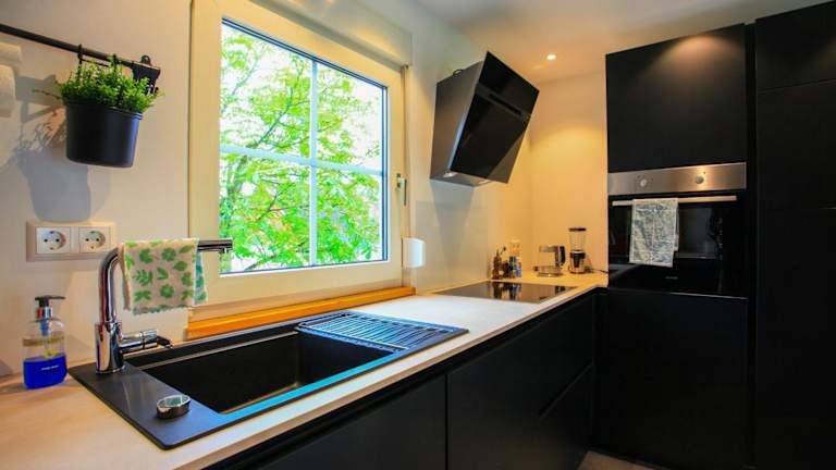 Das Ferienhaus ist ausgestattet mit einem Schlafzimmer und einem Badezimmer. Zur Einrichtung gehören Bettwäsche, Handtücher, ein TV sowie eine voll ausgestattete Küche. Eine Terrasse mit Gartenblick ist ebenfalls vorhanden.