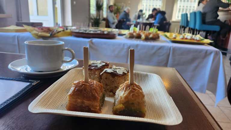 Im Das Meyman wird ein Frühstücksbuffet angeboten, das sowohl vegetarische als auch vegane Optionen beinhaltet. Es stehen auch spezielle Speisen für besondere Ernährungsbedürfnisse auf Anfrage zur Verfügung. Weiterhin gibt es ein Café vor Ort sowie Möglichkeiten zur Essenslieferung in die Unterkunft.