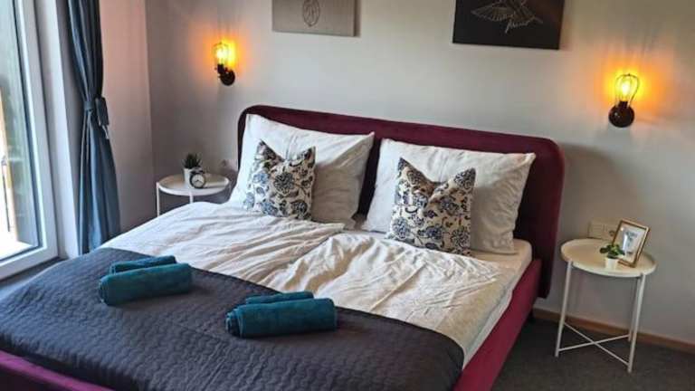 Die Ferienwohnung besitzt zwei Schlafzimmer, ein Wohnzimmer und eine gut ausgestattete Küche mit Kühlschrank und Geschirrspüler. Handtücher und Bettwäsche werden bereitgestellt.
