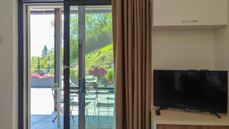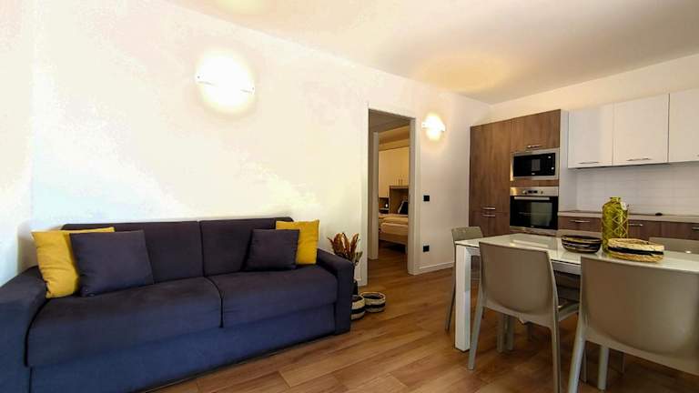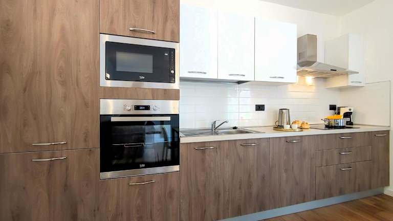 Die Ferienwohnung ist klimatisiert und besteht aus 2 Schlafzimmern, einem TV, einem Essbereich sowie einer Küche. Diese ist ausgestattet mit einem Kühlschrank und einem Geschirrspüler. Handtücher und Bettwäsche werden zur Verfügung gestellt.